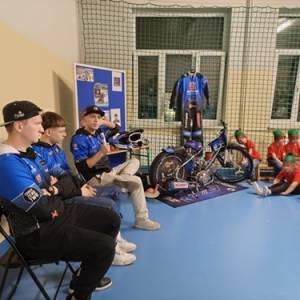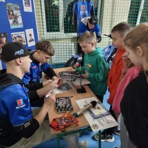 Wczoraj w naszej szkole odbyło się wyjątkowe spotkanie w ramach cyklu „Spotkaj Gwiazdę Sportu”. Naszym gościem był Bartek Kowalski #302 – mistrz świata juniorów oraz mistrz Europy seniorów w żużlu, obecny zawodnik Betard Sparty Wrocław. Towarzyszyli mu jego brat, również żużlowiec Radix Kowalski Racing, oraz mechanik Dominik Murjas. Podczas spotkania uczniowie mieli okazję poznać tajniki jednej z najbardziej widowiskowych dyscyplin sportowych. Nasi goście zaprezentowali materiały wideo z zawodów żużlowych, opowiedzieli o sportowej karierze, treningach i pracy całego zespołu. Uczniowie mogli z bliska obejrzeć motocykl żużlowy oraz strój zawodnika, a także usiąść na prawdziwym motocyklu, co wzbudziło ogromne emocje. Nie zabrakło sesji pytań i odpowiedzi, a po spotkaniu zawodnicy rozdawali autografy i robili zdjęcia z uczniami . Część praktyczna dostarczyła dodatkowych emocji – uczniowie obserwowali burnout (rozgrzewanie tylnej opony), usłyszeli charakterystyczne brzmienie silnika żużlowego i zwiedzili bus Bartłomieja Kowalskiego, w którym przewozi motocykl i podróżuje na mecze. To spotkanie dostarczyło uczniom wielu sportowych wrażeń i było doskonałą okazją do poznania żużla „od kuchni”. Dziękujemy naszym gościom za inspirującą wizytę, poświęcony czas i niezapomniane emocje!