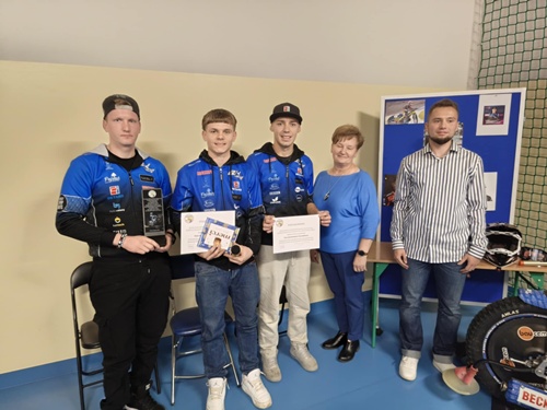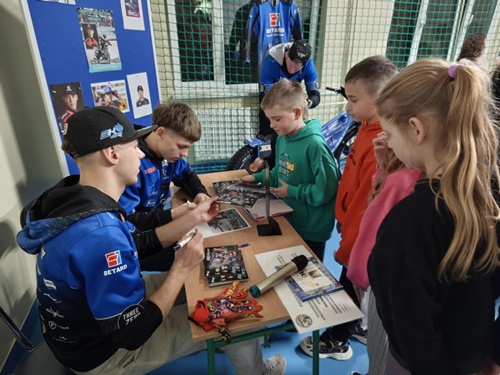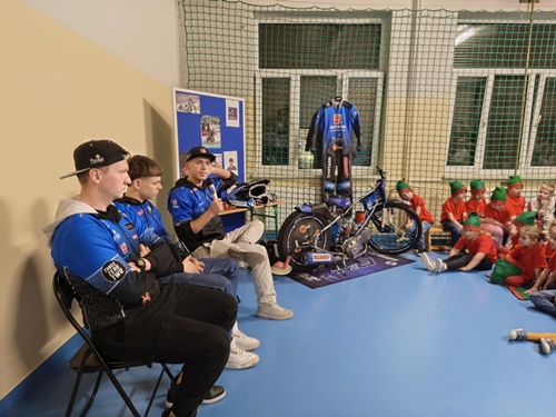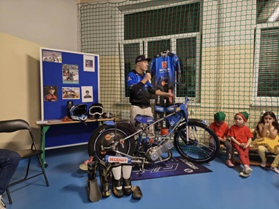 Wczoraj w naszej szkole odbyło się wyjątkowe spotkanie w ramach cyklu „Spotkaj Gwiazdę Sportu”. Naszym gościem był Bartek Kowalski #302 – mistrz świata juniorów oraz mistrz Europy seniorów w żużlu, obecny zawodnik Betard Sparty Wrocław. Towarzyszyli mu jego brat, również żużlowiec Radix Kowalski Racing, oraz mechanik Dominik Murjas. Podczas spotkania uczniowie mieli okazję poznać tajniki jednej z najbardziej widowiskowych dyscyplin sportowych. Nasi goście zaprezentowali materiały wideo z zawodów żużlowych, opowiedzieli o sportowej karierze, treningach i pracy całego zespołu. Uczniowie mogli z bliska obejrzeć motocykl żużlowy oraz strój zawodnika, a także usiąść na prawdziwym motocyklu, co wzbudziło ogromne emocje. Nie zabrakło sesji pytań i odpowiedzi, a po spotkaniu zawodnicy rozdawali autografy i robili zdjęcia z uczniami . Część praktyczna dostarczyła dodatkowych emocji – uczniowie obserwowali burnout (rozgrzewanie tylnej opony), usłyszeli charakterystyczne brzmienie silnika żużlowego i zwiedzili bus Bartłomieja Kowalskiego, w którym przewozi motocykl i podróżuje na mecze. To spotkanie dostarczyło uczniom wielu sportowych wrażeń i było doskonałą okazją do poznania żużla „od kuchni”. Dziękujemy naszym gościom za inspirującą wizytę, poświęcony czas i niezapomniane emocje!