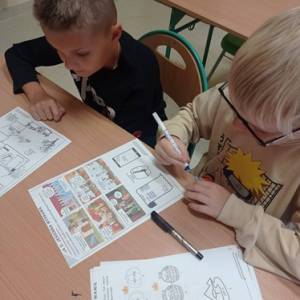 Już jesienią bawiliśmy się w małych odkrywców. Rozwiązywaliśmy zadania-zagadki w escape bookach. Każde zadanie było jak tajemnicza misja, w której trzeba było znaleźć wskazówki i odkrywać ukryte odpowiedzi.Matematyczne ciekawostki pobudzały wyobraźnię i zachęcały do dalszego odkrywania świata liczb. Uczniowie z radością wymyślali własne strategie rozwiązywania zadań, dzielili się pomysłami i obserwowali, jak kolejne działania prowadzą do sukcesu. Wykorzystanie wiedzy matematycznej w zadaniach praktycznych pozwoliło dzieciom łączyć naukę z codziennym życiem – na przykład przy robieniu zakupów, liczeniu pół i obwodów czy pracy ze skalą – pokazując, że matematyka jest naprawdę użyteczna i inspirująca.Znajomość potęg pozwalała nam odkrywać szczęśliwe liczby. Ponieważ wkroczyliśmy w rok 2026, odkryliśmy, że będzie to szczęśliwy rok, co wywołało wśród uczniów mnóstwo radości i ciekawości. Z entuzjazmem obserwowaliśmy, jak liczby i ich własności pozwalają odkrywać nowe matematyczne tajemnice.Tworzyliśmy również piękne, symetryczne wzory z kół, które rozwijały wyobraźnię i zachwycały precyzją. Poznając układ współrzędnych – zaznaczyliśmy punkty, które połączone ze sobą , tworzyły rysunek. Każdy mógł wykazać się pomysłowością, a wspólne odkrywanie i łączenie elementów w całość dawało ogromną satysfakcję. Ten opis to tylko fragment naszych zmagań z matematyką, w których liczby, figury, wzory i ukryte ciekawostki to fascynująca przygoda z królową nauk.