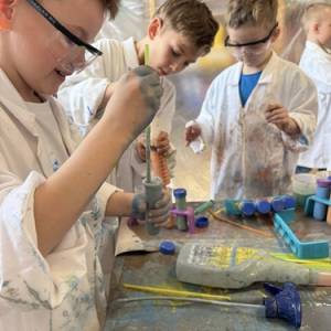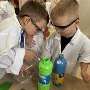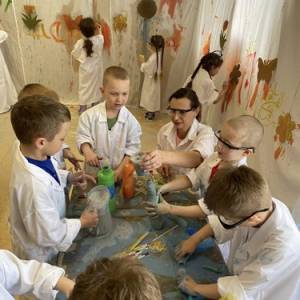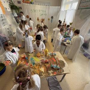 Nasze przedszkolaki mogły swobodnie eksperymentować z różnymi substancjami- była woda, farby, płyn do baniek, spryskiwacze, pędzle i wiele innych ciekawych pomocy. Każdy robił dokładnie to, na co miał ochotę– mieszanie, chlapanie, malowanie i odkrywanie!
