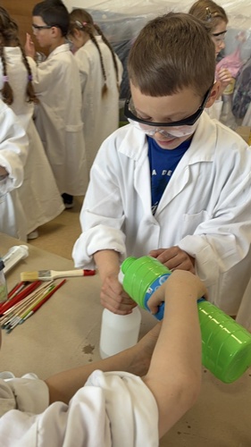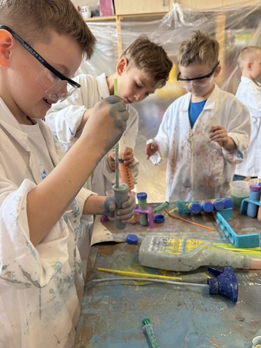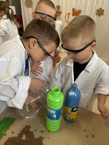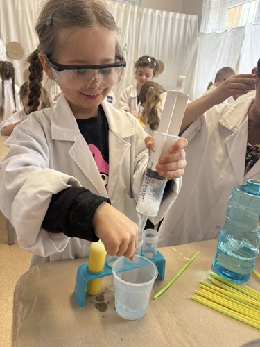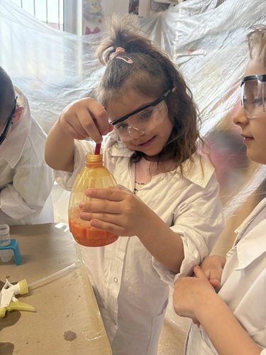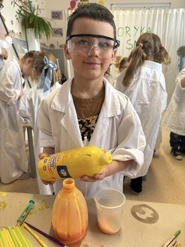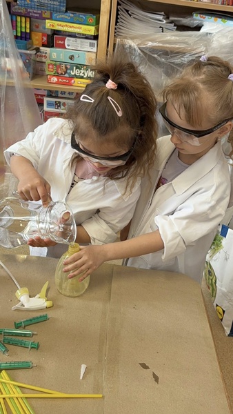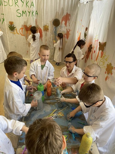 Nasze przedszkolaki mogły swobodnie eksperymentować z różnymi substancjami- była woda, farby, płyn do baniek, spryskiwacze, pędzle i wiele innych ciekawych pomocy. Każdy robił dokładnie to, na co miał ochotę– mieszanie, chlapanie, malowanie i odkrywanie!