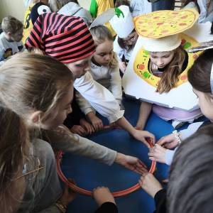 Szkoła stała się miejscem matematycznych odkryć. Uczniowie wcielali się w niezwykłe postacie „π-świata”. Były wśród nas pi-ratki, pi-ppi, pi-es, pi-łkarze, pi-ngwiny, pi-stacja, pi-osenkarka, pi-etruszka, pi-ekarz , pi-zza,czy pi-elęgniarka.