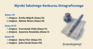Już niebawem o tytuł Mistrza Ortografii Gminy Tuchów 2026 powalczą laureaci etapu szkolnego: Emilia Wójcik, Nikola Sikora, Franciszek Zioło, Zuzanna Kowalska, Daria Filar i Julia Sarad. Gratulujemy!