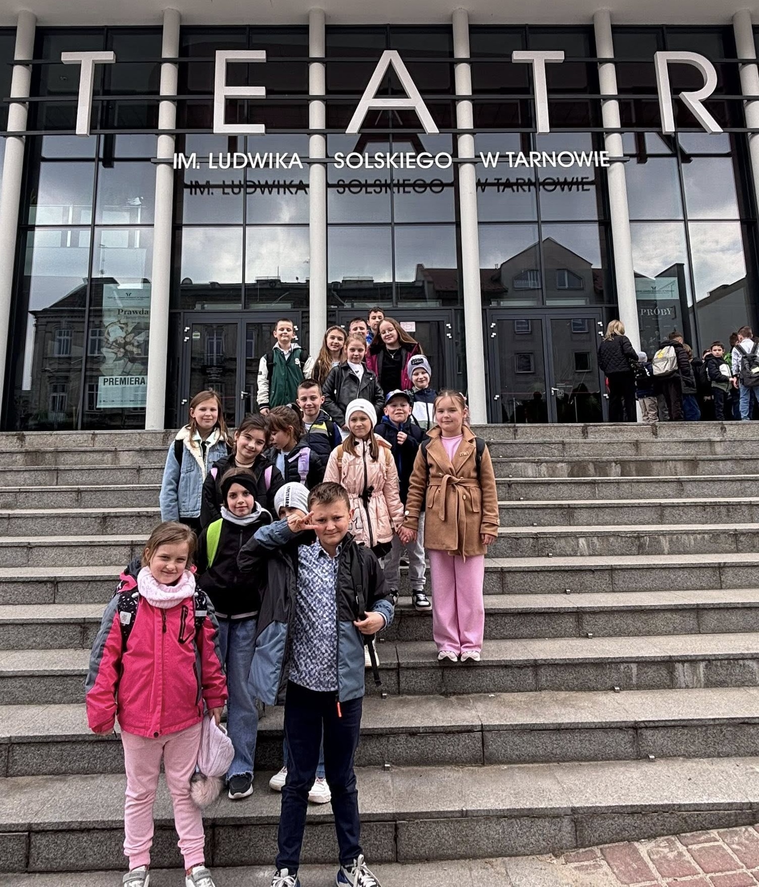 W dniu dzisiejszym uczniowie klas 1–3 wybrali się do Teatru im. Ludwika Solskiego w Tarnowie na spektakl „Niesamowite przygody dziesięciu skarpetek”. Przedstawienie dostarczyło dzieciom wielu radości, a także pobudziło ich wyobraźnię.